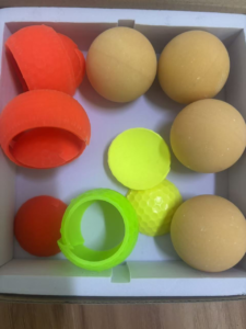 The outer layer of defective or recycled golf balls is separated from the core for recycling and reuse.